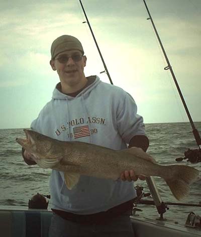 In our first four trips, we’ve taken 11 Walleyes over 28 inches, 6 of them over 30 inches, and one bruiser that measured 32 ½ inches! Our early trips have landed anywhere from 15 – 28 Walleyes. With catches like this, limits are not far away but it really doesn’t matter as long as we are doing consistent catches of truly trophy caliber Walleyes in good numbers. All of our groups thus far have been blown away. The huge fish are still in rather close to shore with most of our fish being found in 54 to 64 feet of water. Stinger spoons fished off of the jet divers and planer boards are getting the job done. Just like early last summer, hardly any Steelhead Trout are being caught. I know they are schooled up well off shore, and once we venture out further, we’ll see plenty of Trout action mixed in with our Walleye catches. Water temps as of early June are running in the low 60’s. I’m very impressed with this early action. It will only get better with each day. We are booked quite heavy for most of the summer but we do have a dozen or so openings still available. Please call or email us for the most current list of available dates. We also offer afternoon trips and these are for the most part wide open. If you’ve never experienced our Walleye season here in Ashtabula, OH, I invite everyone onboard “The Trophy” for a day of incredible fishing! Capt. Walt