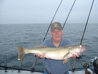 | Still though, on most trips we are managing to catch a few bigger ones although not very many at this point.  Steelhead Trout have been few and far between as well.  I have been way out,  in close to shore, east, and west, it just doesn't seem to matter. We are just being inundated with these beautiful three year olds which will carry this lake for years to come.  Somehow we'll get through this year,  next year we will see all these fish at 4 lbs. plus.   Though, I wish everyone could catch nothing but monster Walleyes, have calm seas, and a picture perfect day. You have to take what the lake gives you, and just be thankful that you are catching fish. For some of the groups where limits have come extremely fast, the alternative is to be out there all day and not catch anything. I've been on both sides of that fence. Believe me, I'll take the quick limits anytime.  |