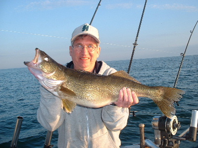 | It's been the attack of the "03's"! Totally unbelievable. That's the only way to describe what we are experiencing here in Ashtabula, and from what I am gathering, lake wide. The three old Walleyes from the record smashing successful hatch of 2003 are everywhere. They are so aggressive that everyone is catching record fast limits of these great eating size Walleyes. Most of these three year olds are 17 - 20 inches in length, and weigh 2 - 3 lbs. These fish are so dominant that it has now become difficult trying to catch some of the larger fish that we all know are still out there somewhere. |