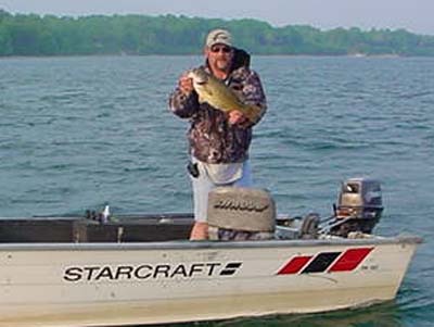 | SMALLMOUTH BASS: Ed Lightner of Pittsburgh caught a nice 6 pound 8 ounce.  He caught it out in 16 ft of water west of Walnut Creek on a Tube Jig.  Color was Dark Green.  |