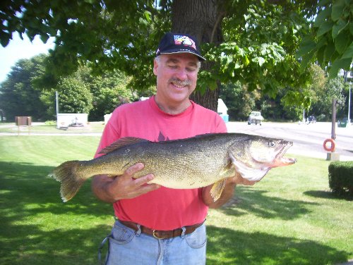 | WALLEYE: Doug Rumball of Erie brought in a 10 pound ½ ounce Walleye for Angler Award. It was 31 ½ inches long and had a girth of 18 inches. He caught it straight out of Trout Run in 75 ft of water on a Renowsky. The color was Green/Black. |