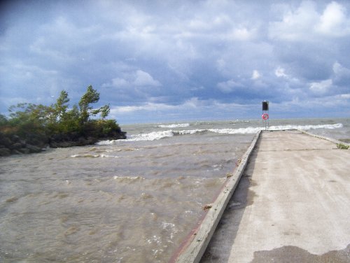 | And another shot looking north towards the lake. This sign is the one across from the tree on the channel wall. |